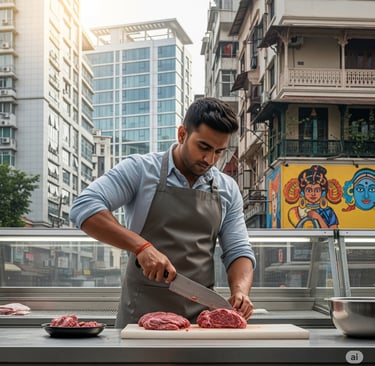Fresh Jhatka-cut meat—available in Bengaluru & Hyderabad.